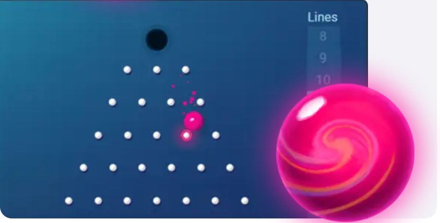 When you place a bet, you throw a ball at the top of a maze. It passes through obstacles until it falls into a pot at the bottom of the interface. Each pot has a set value, which represents the multiplier of the player’s bet.